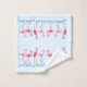Toalha Flamingos para o banheiro tropical. Os flamingos cor-de-rosa entre pequenos estrelas azuis / estrelas-do-mar fazem bordas bonito na facecloth, toalha de mão e toalha de banho. Cada item pode ser comprado separadamente ou fazer um conjunto. A fronteira é impressa em cada extremidade das toalhas. O plano de fundo é azul claro e pode ser alterado na seção "personalizar mais".