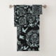 Design preto e floral Conjunto de toalhas verde e preta, incluindo toalha de banho, toalha de mão e pano de lavagem