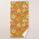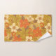 Este conjunto de toalhas de banho apresenta um hetero de paleta a cores nos anos 60/70, com tons de laranja, verde-oliva e amarelo-mostarda.