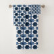 Este design apresenta flores brancas e azuis sobre fundo azul.