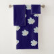 Conjunto De Toalhas Flores Brancas Em Azul Escuro