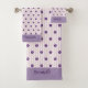 O Elegante Script Name Flowers, Blush, Violet Striped Bath Set faz parte da coleção "Stripes and Flowers: Bath, Beach, Yoga, Viagem". A coleção inclui tudo relacionado ao seu banheiro, natação na piscina ou na praia, relaxamento lá em meio a jornalismo, yoga, cartas de jogar ou frisbee. E, é claro, viajando para a praia com sua mochila favorita, que combina com uma bolsa de higiene, e capas de eletrônicos. Há também cartões que celebram reuniões e dão a você a oportunidade de convidar seu novo conhecido para se conectar virtualmente. O design tocável apresenta faixas roxas com linhas alternadas de flores roxas. Seu nome em um roteiro elegante é impresso no topo e no fundo do tecido facial, toalha de mão e toalha de banho. Adicione seu nome para torná-lo seu. Para obter informações sobre design personalizado ou assistência com personalização, entre em contato conosco em info@KBMD3signs.com.