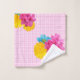 Uma flor de gerânio colorida, rosa e quente, com margaridas amarelas e azuis em um padrão de gingham de rosa claro. A foto da flor é minha foto original das minhas próprias flores. Mostrado aqui num conjunto de toalhas de banho personalizável. Vem com um pano de lavagem, toalha de mão e toalha de banho. O texto na toalha da mão diz, "Torne o Dia a Dia Bonito!" Você pode personalizar este design da maneira que quiser. Mova as flores, mude o tamanho do padrão e personalize com sua própria mensagem. Que maneira bonito de sotaçar seu banheiro neste primavera e verão!
