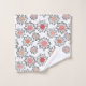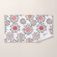 Este conjunto de toalhas tem uma design moderna do século médio de flores feitas de círculos em tons de rosa, amora e bege e linhas pretas.
