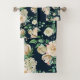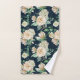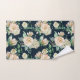Linda rosa branca e flores de hydrangea toalha de banheiro com padrão floral colocada sobre fundo preto