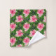 Adicione um toque dos trópicos à decoração do banheiro com esta toalha de banho com lindas flores tropicais em tons de rosa com verde. A toalha de banho é cor-de-rosa maciço, com uma fronteira floral de flores cor-de-rosa tropicais, e a toalha de mão e o pano de lavagem têm o design do impressão floral.