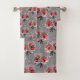 Conjunto De Toalhas Flores vermelhas na cinza