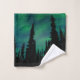 Este conjunto de toalhas do banheiro mostra uma fotografia impressionante da floresta à noite com luzes de norte de cor verde, também conhecida como Aurora Borealis no céu noturno. Perfeito para decorar uma cabana ou aluguel de férias com temas florestais.