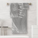 Personalize facilmente este metal escovado prateado e uma toalha de banho com padrão de brilho glamouroso, com seu próprio nome personalizado.