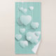 Conjunto De Toalhas Fundo verde claro com corações brancos 3D