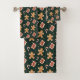 Gingerbread and Peppermint Christmas Pattern on Green Bath Towel Set