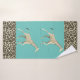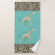 Um retrato de uma girafa galopante e graciosa num pano de fundo verde teal com uma borda de padrão de girafa. O safari selvagem exótico vibe para qualquer entusiasta da girafa.