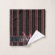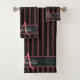 Bonita e moderna, este elegante conjunto de toalhas preto-e-rosa listradas, falso brilho, pode ser totalmente personalizado com nome e monograma.