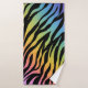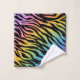 Este lindo conjunto de toalhas de banheiro apresenta um impressão de design de stripe de zebra gradiente de arco-íris. As típicas listras-zebra brancas são substituídas por listras coloridas de gradiente arco-íris. As listras pretas ainda são visíveis.