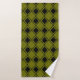 Este conjunto de toalhas tem um pano de lavagem preto, uma toalha de mão verde, e uma toalha de banho com um design moderno do século médio de diamantes robustos pretos dentro de diamante preto num campo de verde.