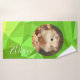 Toalha cortante e divertida com hamster fofo e design de fundo colorido. Personalize com seu nome ou iniciais.