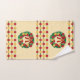 Classic holiday comfort in a timeless knit-look pattern of green Christmas trees and red Cream-colored knit-look design with a central holiday wreath, bright red bow, and garland borders. A vintage-cozy favorite.