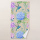 Uma Bela Toalha De Banho Para Qualquer Decoração De Banheiro. Grandes Flores Azuis De Hidrópias Com Aves Hummingbird, Dragonflies e Borboletas.