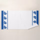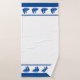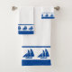 Na moda elegante iate azul no conjunto branco de toalhas de banho.
