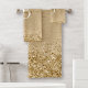 Personalize facilmente esta toalha de banho-chic em moda, que apresenta um design com brilho brilhante bonito de ouro num fundo metálico escovado de ouro.