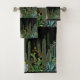 A vista de um jardim do cacto na noite com as plantas perto do trajeto banhou-se na parte traseira leve e alta do cacto dentro encoberta na escuridão