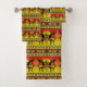As toalhas de banho apresentam um design de Kokopelli tribal. Veja o resto desta coleção para mais acessórios do banheiro sudoeste.