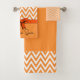 Padrão de chevron de especiarias de abóbora laranja e branco em um conjunto de toalhas de banho que você pode personalizar. Chevron é um padrão em V invertido, com cada lado se encontrando no ponto sem interrupção. Os resultados são um padrão ousado, clássico e zigue-zague sem emendas. Semelhante, mas ligeiramente diferente do que o padrão tradicional espinha de peixe. Toalhas coloridas para personalizar para você, sua mãe, pai, tio, tia, irmão, irmã, vizinho, avô, avó, marido, esposa, amigo ou colega de trabalho.