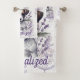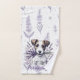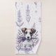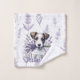 Uma encantadora ilustração feita à mão de um Jack Russell Terrier segurando um timbre de lavanda.