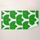 Este conjunto de toalhas tem um pano de lavagem do verde limão, uma toalha de mão verde, e uma toalha de banho com um design de folhas escandinavo repetindo-se através do design em três tons de verde.