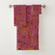 Este Conjunto de Toalhas de Banho Coloridas Legal apresenta um Design de Linhas Magenta Abstrato e Laranja com Destaques Pretos, Amarelos e Rosa Quente. O resultado é uma pintura Legal, Colorida, Groovy, Retro Abstrato que você vai amar!