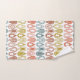Este conjunto de toalhas tem uma design de boho de ovais pontiagudos em boho tons rosa, azul, dourado e marrom.