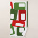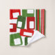 Este conjunto de toalhas tem uma design de Natal moderna do século médio de linhas e retângulos em tons retrorados de vermelho e verde.
