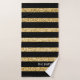 Conjunto De Toalhas Listra Dourada Monograma E Listras Pretas