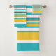 Conjunto De Toalhas Listras Complexas - Turquesa e Amarelo