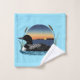Um leão em um lago com um pôr do sol e se catapultará em um pano de fundo azul