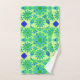 Toalha colocada em um padrão mandala de doze pontos em azul-turquesa, azul e tons de verde limão acentuados com azul-real
