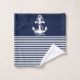 A toalha decorativa do banho Na moda apresenta uma faixa azul e branca marinho náutica com uma ilustração do vetor da âncora branca sobre um fundo azul, podendo facilmente alterar a cor. Itens correspondentes disponíveis em nossa loja.