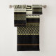 Esta composição está num movimento tradicional de linha mediana, com formas de linha de matiz de jasmim de ouro-claro intimamente relacionadas contra um fundo de canvas de contraste preto pristine, criando um conjunto elegantemente clássico de toalha de banho.