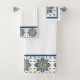 Banheiro encantador com medalhões multicoloridos. Medalhões azuis, verdes e bronzeados sobre fundo branco. O padrão vem de azulejos feitos à mão. Procure o azulejo de cerâmica correspondente, por um banheiro completamente coordenado. Estilo: Conjunto de Toalhas Transforme seu banheiro em seu próprio oásis pessoal com uma toalha personalizada perfeita para secá-lo com estilo. O conjunto de toalhas é um presente excelente para muitas ocasiões. Dimensões: inclui uma toalha de banho de 30" x 60", uma toalha de mão de 16" x 28" e um pano de lavagem de 13" x 13": a frente é uma mistura de poliéster, a parte traseira é 100% de algodão A impressão sublimação permite a impressão vibrante concebida para a última máquina lavável, a roupa baixa