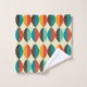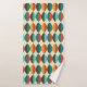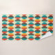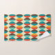 Toalha de banheiro moderna do Médio século. Oval apontado, forma de lente padrão. Cores em vermelho, turquesa, amarelo e castanho.
