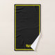 modern elegant black & yellow monogram script name bath towel set, classic home decor . elegant custom gift for fathers and grandpa .