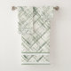 Moisés Verde com padrão no Conjunto de Toalhas Brancas. Design com um belo limite de fronteiras. Excelente para banhos de hóspedes, bem como doação.