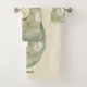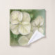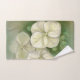 Este conjunto de toalhas é decorado com trabalho de arte em cores pastéis macios que mostram três delicadas flores de folhas brancas-cremosas, hydrangea, com botões acentuados em verde.