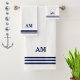 Três listras azuis e monograma em branco. Toalha moderna elegante.