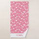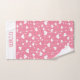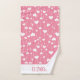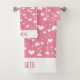 Um adorável conjunto de toalhas de banho com corações rosa e branco. O conjunto inclui toalha de banho, toalha de mão e pano de limpeza. Monograma a toalha de mão e a toalha de banho. Perfeito para o banheiro de uma menina.
