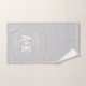 Cinzas e toalha de banho de búfalos brancos personalizados com o monograma da sua família ou outro texto em uma crista de logotipo de seta rustica. Use as ferramentas de design para escolher qualquer cor de fundo, editar as fontes de texto e colorir ou carregar suas próprias fotos para criar uma de tipo design. O toque perfeito para o seu decorador moderno de casa de fazenda!