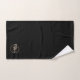 Conjunto de toalhas de monograma preto e dourado com guião Chic elegante. Você pode personalizar o nome, monograma e personalizar a fonte e as cores para criar seu próprio design único. Projetado por Thisnotme©