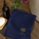 Este conjunto de toalhas personalizado é simples, sofisticado e elegante. Ele apresenta um fundo azul marinho com um monograma dourado e tipografia de script para sua personalização. As cores podem ser personalizadas à sua escolha