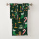 Design de natal verde com árvores de natal, canas doces, meias de natal e biscoitos masculinos de gengibre.