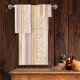 Se você está se perguntando que combinações de cores escolher para sua decoração de Natal e presentes este ano, eu criei coleções de padrões coordenadores para tornar a vida um pouco mais fácil. Este design de toalha apresenta um design de faixa vertical moderno, com um efeito de brilho e resmungão, mostrado aqui em uma paleta cor rosa e dourada. "Fa La La La La" vertical em ouro adiciona um sotaque divertido. Procure ID1009 para ver outros produtos e padrões neste esquema de cores.